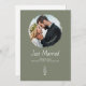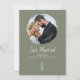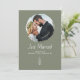Rustic pine tree sage green casual wedding announcement, with a simple typography and photo design. With customizable lettering, you add your own information. You also add your own photo to add personalization. Great for announcing your special day with a boho style.