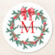 Klassisk, rustisk julkrans i gräs med pinekoner, bär och balsamstjärnor och en stor röd helgdag. Redo till monogram med ditt namn och din initiala början. Sammansatt design efter Helgdag Hearts-design (reserverade höger).