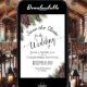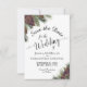 Med det här vackra besparingskortet får dina vänner och din familj veta om ditt kommande bröllop. Den har en rustik boho-chic med elegant-skriptkalligrafi och handmålade vattenfärgsfinkar och gräs grenar. Det finns utrymme för namn, datum och plats för bröllop. Baksidan har ett strålande kluster av pinekoner och grenar som är bundet med en vit buk på en marmorerad grönt.
