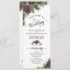 Det här bröllopsprogrammet är enkelt, elegant, elegant och vackert. Den har en handmålad vattenfärgsdesign med sprit från gräs grenar och pinekoner. Typografin har gammalmanuskalligrafi som erbjuder en luft av elegans och sofistikering medan den fortfarande är nere på jorden och hemmet. Har plats för ceremonin, bröllopsfesten och ett tack till kort. Perfekt för ett utomhus- eller vinterbröllop.