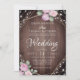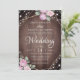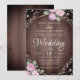 Rustic Pink Floral Wood & String Lights Wedding Inbjudningar
