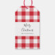 Rustic Play Elegant Script Red White Gingham Presentetikett