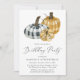 Rustiskt fall födelsedagsfest inbjudan med pläterade vattenfärgspumpor i skuggor av svart, grått, vitt, orange och grädde. Anpassa pumpa födelsedagsfest inbjudan med party-detaljer i vanlig svart text med calligraphy-skriptaccents. Inbjudningskorten för pumppumpa födelsedagsfest är perfekt till använda för både vuxen och barn födelsedagsfester.