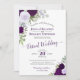 Denna virtuella bröllopsinbjudan är designad för par som har bestämt sig för att ta sin firande-online antingen på grund av pandemin eller av något annat skäl. Den har en rustik boho-chic med handmålad vattenfärg ro i plommonskuggor, dammig lila och lavender. Eleganten bouquet innehåller sprit av lavender, eukalyptus, baby utandning och andra löv och grönt på en klassisk vit bakgrund. Underbart sätt till inbjudan dina vänner och din familj att vara en del av din speciella dag, även om det inte är personligt.