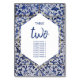 Den här konstruktionen har den portugisiska plattan mönster. Kortnumret bröllop bord är elegant utformat med en vit och guld färg geometrisk form. Unik utformning av Azulejo-blått och vitt bröllop-bordsnummer med modernt inslag. Det finns också möjlighet att matcha bröllopsinbjudningar och andra artiklar i kontorsartiklar. Anpassa antalet och köp varje bord individuellt beroende på hur många bordsnummer du behöver.