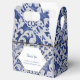 Den här konstruktionen har den portugisiska plattan mönster. Texten i bröllop är elegant ramad med en vit och guld färg geometrisk form. Unik Azulejo-plåtsdesign med blå och vit blommigt med modernt inslag. Det finns också möjlighet att matcha bröllopsinbjudningar och andra artiklar i kontorsartiklar.