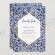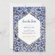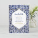Den här konstruktionen har den portugisiska plattan mönster. Texten i bröllop är elegant ramad med en vit och guld färg geometrisk form. Unik utformning av Azulejo-blått och vitt bröllop spara datum-kort med modern inslag. Det finns också möjlighet att matcha bröllopsinbjudningar och andra artiklar i kontorsartiklar.