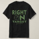 This eye-catching design t-shirt celebrates the art of rifle target shooting with a rustic twist. The bold, distressed text "RIGHT ON TARGET" takes center stage, complemented by a vintage-style target graphic featuring a prominent red bullseye. The phrase "good shot!" adds a touch of encouragement and camaraderie. Perfect for gun enthusiasts, hunters, or anyone who appreciates the skill involved in hitting the mark.