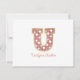 Rustic Preppy Monogram "U" Rosa Gingham Wood Girly Anteckningskort