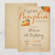 Pumpkin Birthday-inbjudan. Första födelsedagen, alla åldrar. Hösten Fall Födelsedagsfest inbjudan. Boy eller Girl Bday Bash. Orange och Brown. Vintagens bakgrund. Retro. Rustic. Om du vill göra ytterligare anpassningar klickar du på knappen "Anpassa" och användor verktyg som är utformat för att ändra mallen.
