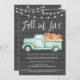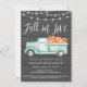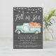 Rustic Pumpkin Fall i Kärlek Inbjudningskort för möhippan med en rustisk vintage lastbil, pumpor och sträng ljus. Inbjudan kommer att ingå i en samling. Kommer också att vara tillgängligt som vykort. Designad av Bröllop Designer Beverly Arena-Bainbridge The Icing on the Cake icingonthecakezazzle@icloud.com