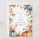 Fira kärlek med en mysigt höstdesign med vattenfärgspumpor, höst löv och varmt säsong. Med mjuk elegant och fullt redigerbar text är det perfekten för en rustikskörd eller bröllop i oktober.