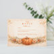 Warm autumn tones meet elegant celebration styling in this pumpkin and floral graduation design. A hand-painted heirloom pumpkin sits surrounded by soft peach blooms, muted greenery, and golden foliage, creating a romantic harvest aesthetic. The delicate wreath framing and warm ivory background give it a refined, feminine feel while still embracing cozy fall charm.