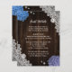 Provide your guests with important details with this rustic purple and blue floral wedding enclosure card featuring blue and purple hydrangea flowers on a barn wood background adorned with white floral lace.