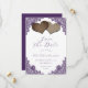 Complement your romantic rustic purple wedding party with this beautiful burlap and lace wedding save the date card featuring two burlap hearts and elegant floral lace. Matching items available.