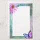 En grönt av bild ram skapar ett rustiskt gräns, med en rosa blomma och en rosa- och lila-fjäril i hörnen av denna vackra station. Perfekt för alla som kärlek land ser ut!