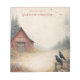 This notepad design features a softly painted rustic farm scene with a weathered red barn nestled among tall evergreen trees. A winding dirt path leads gently into the distance, creating a calm, open writing space. Wildflowers in muted autumn tones border the path, adding warmth and texture without overwhelming the layout. Two black crows perch on a simple wooden fence in the foreground, while a few birds glide across a pale, misty sky. The overall look is serene, nostalgic, and balanced, blending farmhouse charm with subtle elegance—ideal for everyday notes, lists, or thoughtful writing. Personalize with your own name.