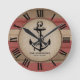 Rustic Red & Brown Nautical Rand & Anchor Roun Rund Klocka