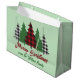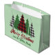 Den här personligen rustik helgdag-presentväskan har trendigets rödplätering och grönt Julgranar ovanför ditt budskap God jul och Gott nytt år. En söt anpassningsbar och ett traditionellt utseende som för närvarande finns i stil igen, detta festliga presentbyte är perfekt för en familj som tycker om en klassisk och nostalgisk design.