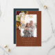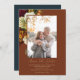 Eteral blommigt buquets med skuggor av mörk rött, rostig orange, gult för att skörda guld och spola grönt ge denna mörk botaniskt "Save the Date"-design ett utseende av djup, rik modern elegans fungerar som en vackert dramatisk bakgrund till ditt foto och är säker på att imponera på dina mottagare. Finns i flera olika kombinationer av färg. Lägg bara till namn, datum, plats och ytterligare information för bröllop. Här i rostigt orange/terracotta och mörk teal. Sammansatt design efter Helgdag Hearts-design (reserverade höger).