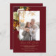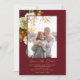 Eteral blommigt buquets med skuggor av mörk rött, rostig orange, gult för att skörda guld och spola grönt ge denna mörk botaniskt "Save the Date"-design ett utseende av djup, rik modern elegans fungerar som en vackert dramatisk bakgrund till ditt foto och är säker på att imponera på dina mottagare. Finns i flera olika kombinationer av färg. Lägg bara till namn, datum, plats och ytterligare information för bröllop. Här i mörk röd. Sammansatt design efter Helgdag Hearts-design (reserverade höger).
