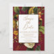 Eteral blommigt buquets med skuggor av mörk rött, rostig orange, gult för att skörda guld och spola grönt ge i mörken botaniskt bröllop "Save the Date" ger en bild av djup, rik modern, elegans som säkert imponerar på dina mottagare. Finns i flera olika kombinationer av färg. Lägg bara till namn, datum, plats och webbplats eller annan information. Här visas en röd bakgrund med svart bakgrund i mörken. Sammansatt design efter Helgdag Hearts-design (reserverade höger).