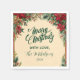 En julklapp i party med klassisk röd poinsettias, gräs grenar och vintergrön. Den rustiska vintagen stil fångar julhelgens värme och smak, perfekt för en traditionell jul-firande.