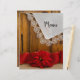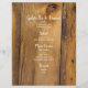 Anpassa den charmerande Rustic Red Poinsettia Land Winter Wedding Menu med namnen av bruden och brudgummen, plats och detaljer om den måltid du kommer att vid din säsong-måndag eller julluncheon, efter bröllop brunch eller giftermål-middag. Den här avslappnaden, som ändå är klassens anpassningsbar, är ett bröllop-meny för lantliga rancher, har ett foto med en blommigt av en röd poinsettia-blommar, röd burlap-ribbon och en snöre-trimmad linnäsduk med en brun lada-träbakgrund. Perfekt för ditt informella evenemang vid gården stil lada party firande.