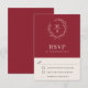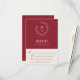 Den här designen är ett smakfullt och klassiskt val i svarskorten i bröllop och ger en enkel elegans i textlayouten och det klassiska stil. En enkel öppen lagerkrans av sketsade löv omger den monogramstarten av bruden och trippen. Den enkla textmallen för elegant är redot att anpassa sig till ditt initialer och det datum som krävs för OSA. Svarskortet är ett mångsidigt val för bröllop när som helst under årstiden och för vilken bröllop-plats som helst, oavsett om det är en högtidlig religiösa eller en sekulär affär vid en bankethall, vinerier, museer, restauranger, privat klubb eller en sund bröllop utanför naturen. Det finns i en mängd populära färg (visas här i rustiskt rött och ru) samt i många olika pappra typer och vikter.