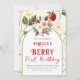Rustic Red Strawberry Theme Berry Första födelseda Inbjudningar