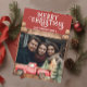 Skriva skript på roligten och en vintage röd lastbil gör att de här helgdag blir väldigt glada! Vattenfärgat trä inslag ge är en roligt och en känsla av feghet.