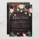 Rustic Rehearsal Middag Mason Burk, Light Strings. Med mörk, rustiska träpaneler, vattenfärgade blommor i boho burgundy och och marint ro. Handskriven bröllopsinbjudan för elegant och modern faux guld (med silver-filter). DIY-bakgrund färg. Copyright © 2016-2020 Bombino-design.