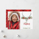 Roligt och festlighet, dessa fotokort är det bästa sättet att skicka varmt önskemål i julhelg. Utformningen har en vattenfärgad renskalle med garland. Baksidan är ett rödhårigt mönster och all text är helt och hållet anpassade.