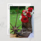 Meddela dina kommande påhopp med det charmerande vykortet Rustic Ro och Cowboyboots Land Westerna Bröllop spara datum. Den här avslappnaden har ännu ett anpassningsbar-ranchtema bröllop behålla. På vykortet visas ett fyrtonigt blommigt av bruna cowboystövlar fyllda med en bukett av röd ros och vita baby utandningsblommor och en vit blommar med ett rostigt gammalt vagnhjul och en suddig möhippa naturlig bakgrund. Inspektion i perfekt för er informella ceremoni och mottagning av gården stil eller party giftermål.