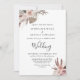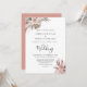 Komplettera ditt klassiska bröllop-evenemang med den här högtidliga bröllopsinbjudan till blommigten ro guld. Utformningen har blommor av pampas gräs, burgundy, rosa och ro guld i elegant buketter.