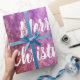 Designad med versalblått och rosa ros guld-faux-folie och textmall för "God jul"-meddelande.
