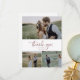 Det här rustiska ro-skriptet med 3 fotokollage bröllop-tack är perfekt för ett landsbyggsbröllop. Den enkla och moderna rosan och vitmönstret i ro guld har en unik, handskriven kalligrafiskrift med en contemporary minimalistisk boho stil. Anpassade i alla färg. Behålla designen minimal och förenklad, eller anpassa den genom att lägga till egna bilder och teckningar. Anpassa kortets baksida med namn och ett tackmeddelande. Du kan också lämna tackmeddelandemallsavsnittet tomt om du vill att skrivan ska förses med en personlig på varje kort när de har anlänt. Dessa kort kan användas för en bröllop, möhippa eller vilken speciell händelse som helst.