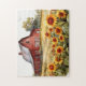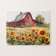 Pussel Watercolor Rustic Red Barn with Sunblommful Art Illustration Roligt/Unique Anpassade