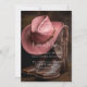 En vackert sammansatt bild som fångar landsbyggsbröllopets innersta väsen och som innehåller ett par finmaskiga bruncowboystövlar parade med en mjuk cowboyhatt ro-färgad. Inför en tålig läderbakgrund framkallar scenen charm, tradition och western elegans - perfekt för den moderna bruden eller brudgummen som för lite land till sin stora dag.