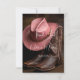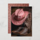 En vackert sammansatt bild som fångar landsbyggsbröllopets innersta väsen och som innehåller ett par finmaskiga bruncowboystövlar parade med en mjuk cowboyhatt ro-färgad. Ställd mot en tålig läderbakgrund. Även ett läder struktur på baksidan av kortet frammanar scenen charm, tradition och western elegans - perfekt för den moderna bruden eller brudgummen som ger lite land flair till sin stora dag.