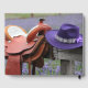 En vackert utformad lädersadel vilar på ett väderstall av trä, mot en drömmande bakgrund av lila vilda blommor. Den här scenen i land väcker andan av ett bröllop, som symboliserar frihet, tradition och underbarens tidlösa charm utomhus. Perfekt för bröllop-inspiration med western tema eller för älskare gifter sig av häst.