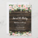 Vacker rosa vattenfärgblommor och grönaktig accent i elegant land söt 16 födelsedagsfest inbjudan. Den här designen har ljus och en mörk lada-träbakgrund, med ett modernt typsnitt. Perfekt för en gigantisk western tematisk sweet sixteen!