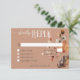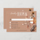 Vi presenterar vårt krävande responskort från bröllop med middagsvalsalternativ, med en rik terracotta-rust-bakgrund som på ett perfekt sätt fångar kärnan av hösten. Den övre högerna är försedd med en bedövande spray av vattenfärgat blad, elegant krämblommor, varma bruna löv och rost samt delikat torkat gräsgräs. Den här fantastiska designen anger perfektens ton för ditt fallbröllop, som blandar rustik charm med tidlös elegans. Gör din speciella dag oförglömlig med denna vackert utarbetade inbjudan som talar till hjärtat av säsongen. Skapat av Farmhouse Press.