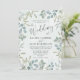 Elegantens eukalyptus och komplementära greer finns med i denna romantiska design. Med en dammig blå, grönt och mjuk färg-palett är detta tema perfekt för bröllop.Bakgrunden har en vattenfärg struktur i sage grönt. Enkel att anpassa med din unika information.
