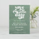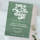 Med en enkel och modern utformning och retrotypografi passar detta meddelande om spara till datum för elegant in vilket bröllop-tema som helst. Den har en modern bakgrund i grönten och en minimalistisk och enkel typografi.