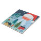 Julens roliga utformning med Jultomten tittar över en stad på vintern.