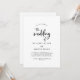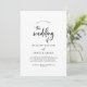 Den här roliga manusvigselinbjudan är perfekt för ett landsbyggsbröllop. Den enkla och moderna svarta och vita designen har en unik liten, handskriven kalligrafiskrift med en contemporary minimalistisk boho stil. Anpassade i alla färg. Behålla designen minimal och förenklad, eller anpassa den genom att lägga till egna bilder och teckningar.