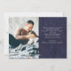 Det här enkla och rustika familjehögtidskortet har en trendig, avslappnad typsnittsstil som säger "God Jul" på en mörkblå träbakgrund. Det finns ett flerfotosgrid med fem foton på framsidan och ytterligare ett på baksidan.
