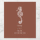 Rustic Seahorse Line Art Terracotta Bröllop Vinflaska Etikett