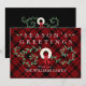 Skicka varmt önskemål till vänner och familj den här julhelgen med det här roliga temat julkort. Eleganten är utformad med en enkel vit krans som dekoreras med guld bollar och en virvelströja med röda bär på en röd och svart bakgrund. På kortets framsida står "Season's Greetings" i vit typografi. Under det har du ditt namn att anpassa. Kortets baksida är svart med vitt skript och lyder: "Varm önskemål för en glad julhelg och friska och gott nytt år!"j med ställe för din namnteckning. Designad av konstnär © Tim Coffey.